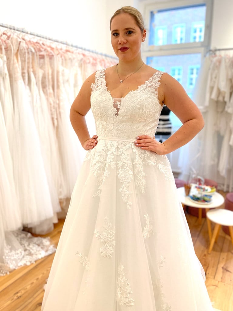 Ob romantisch-verspielt, elegant-schlicht oder modern und extravagant – unsere Curvy Brautkleider in Berlin sind so vielfältig wie die Bräute, die sie tragen. Viele Modelle sind sofort verfügbar, sodass du dein Traumkleid direkt bei uns anprobieren kannst.
