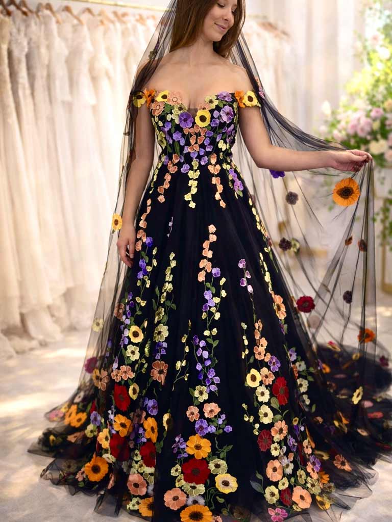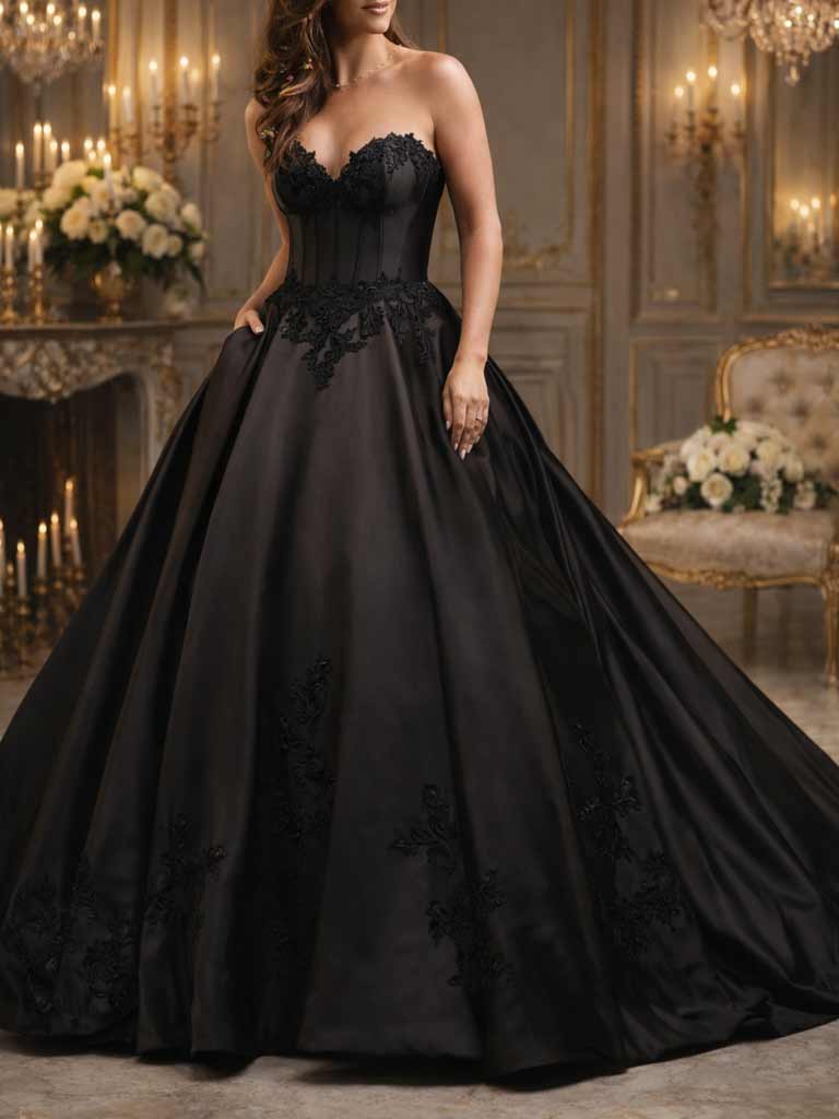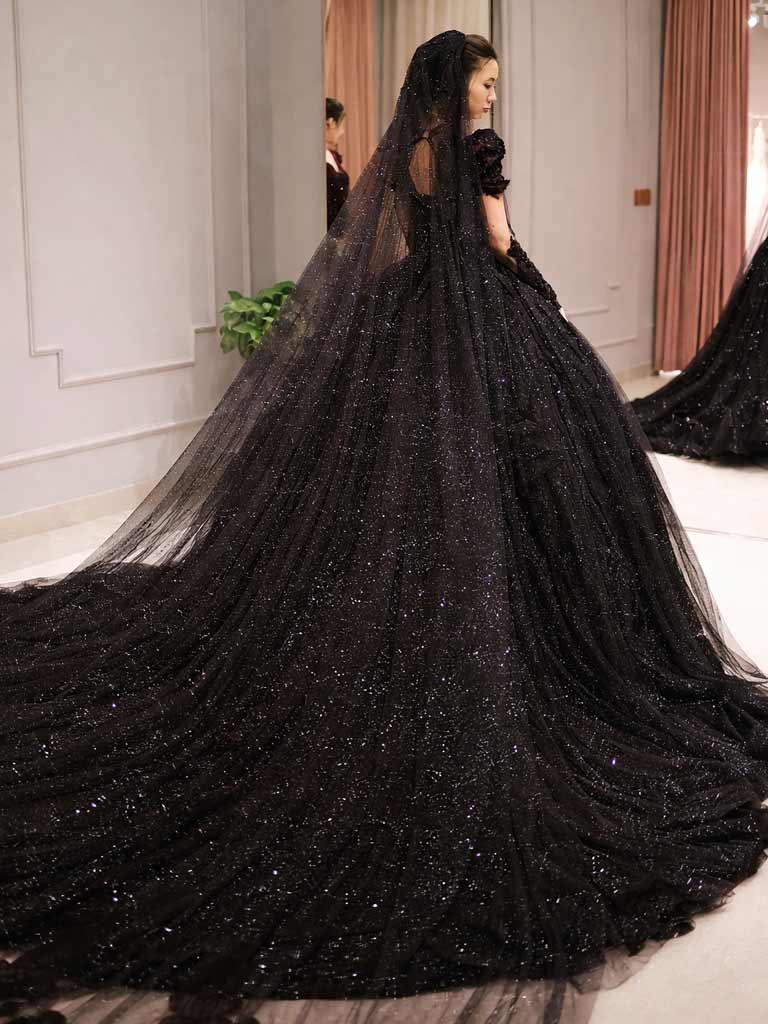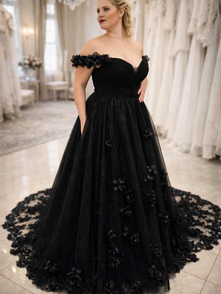 Ein Kleid erschafft diesen Augenblick nicht, doch ein schwarzes Brautkleid kann ihn tragen und bewahren. Es begleitet Bewegungen, Gesten und Begegnungen, ohne sich in den Vordergrund zu stellen.
