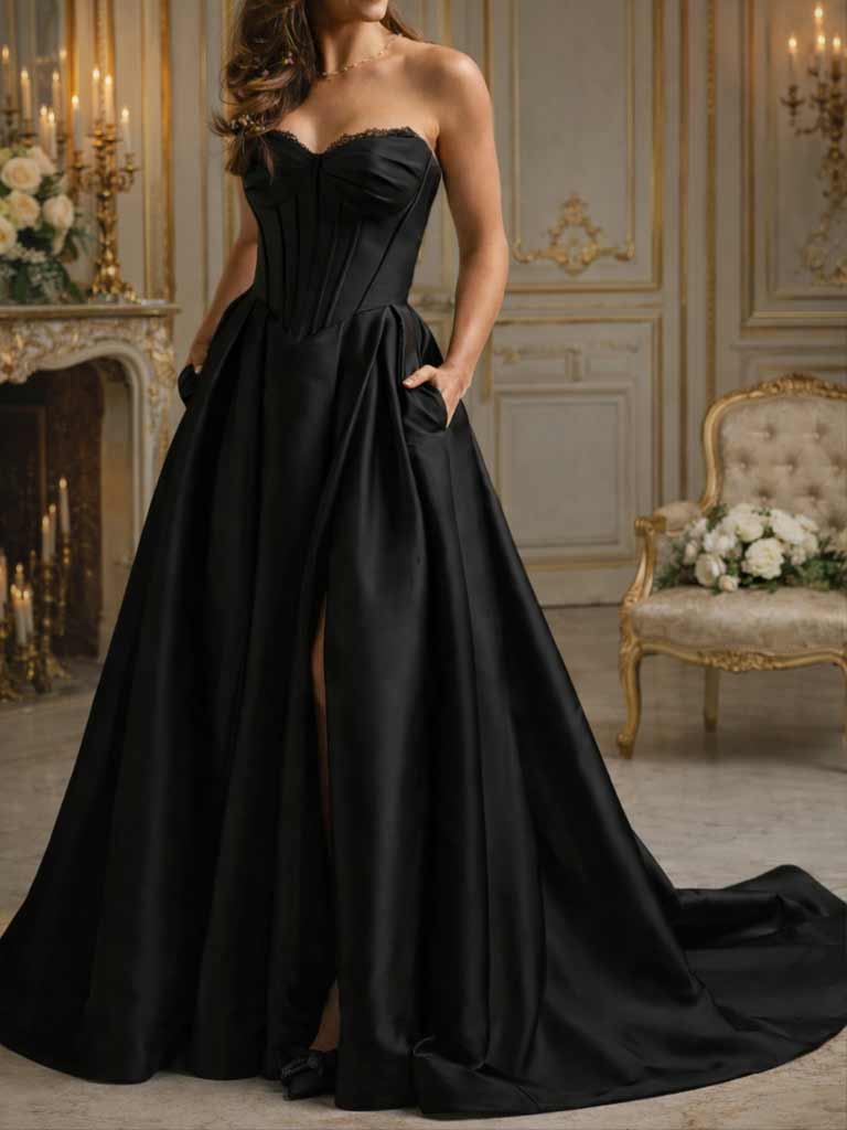 Schwarz lenkt nicht ab, es fokussiert. Die Silhouette wirkt klarer, die Bewegung bewusster, die Ausstrahlung ruhiger. Nicht das Kleid trägt den Moment – du tust es.