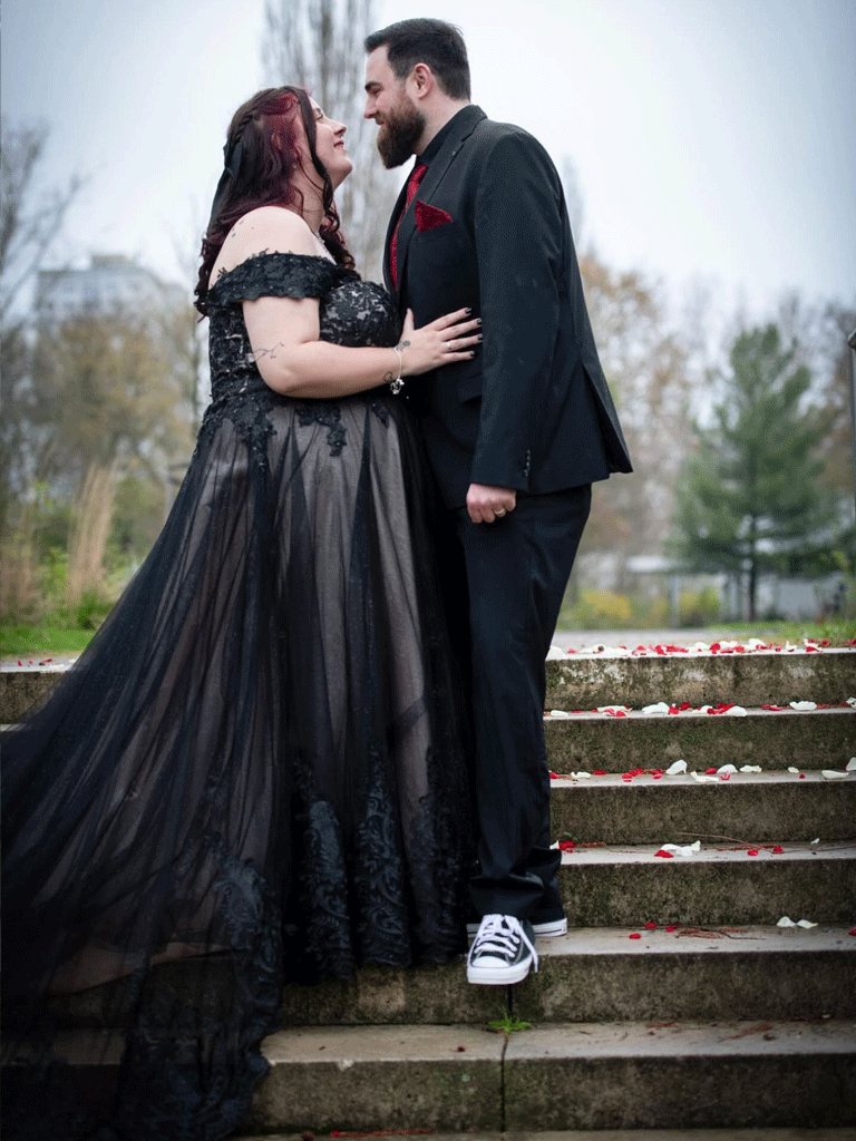 Unsere schwarzen Brautkleider erzählen Liebesgeschichten, die berühren – von der geheimnisvollen Gothic Bride bis zur modernen, eleganten Fashion-Braut.