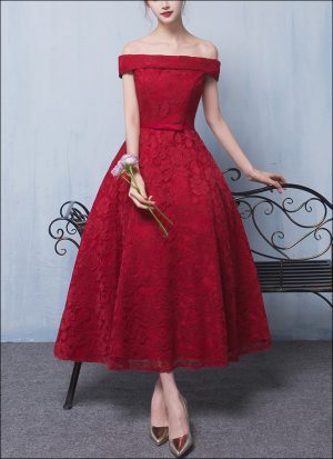 Ein Traum aus Spitze- Mit diesem Kleid ziehst du die Blicke deiner Mitmenschen magisch an. Egal ob du es als Braut, als Hochzeitsgast, auf einer Gala oder einer anderen Veranstaltung trägst- du wirst positiv auffallen. Die Hochwertige Spitze verteilt sich über das gesamte Kleid und der gerade Carmenausschnitt zeigt auf entzückende Art und Weise deine Schultern. Durch den weiten, wadenlangen Rock und die eng anliegende Korsage wird eine verführerische Sanduhren Silhouette gezaubert.