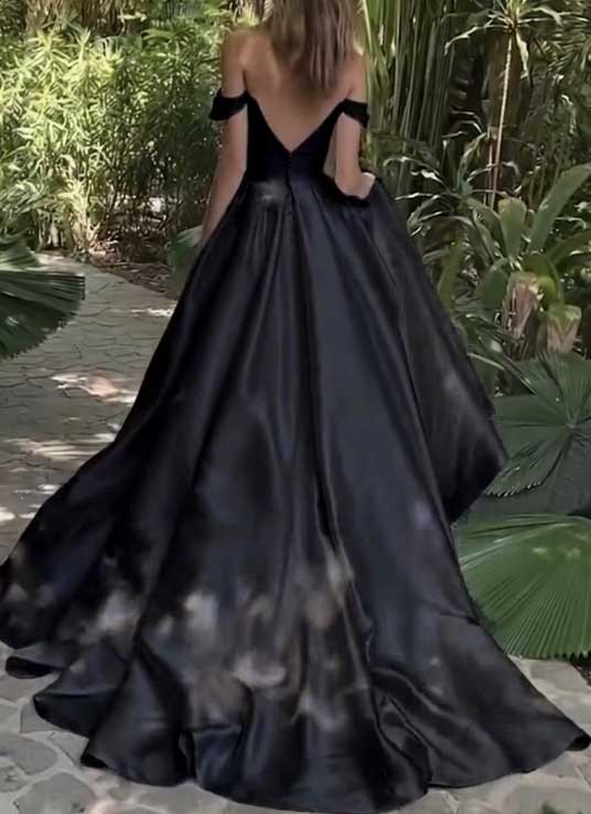 Schwarzes Satin-Brautkleid mit minimalistischem Design