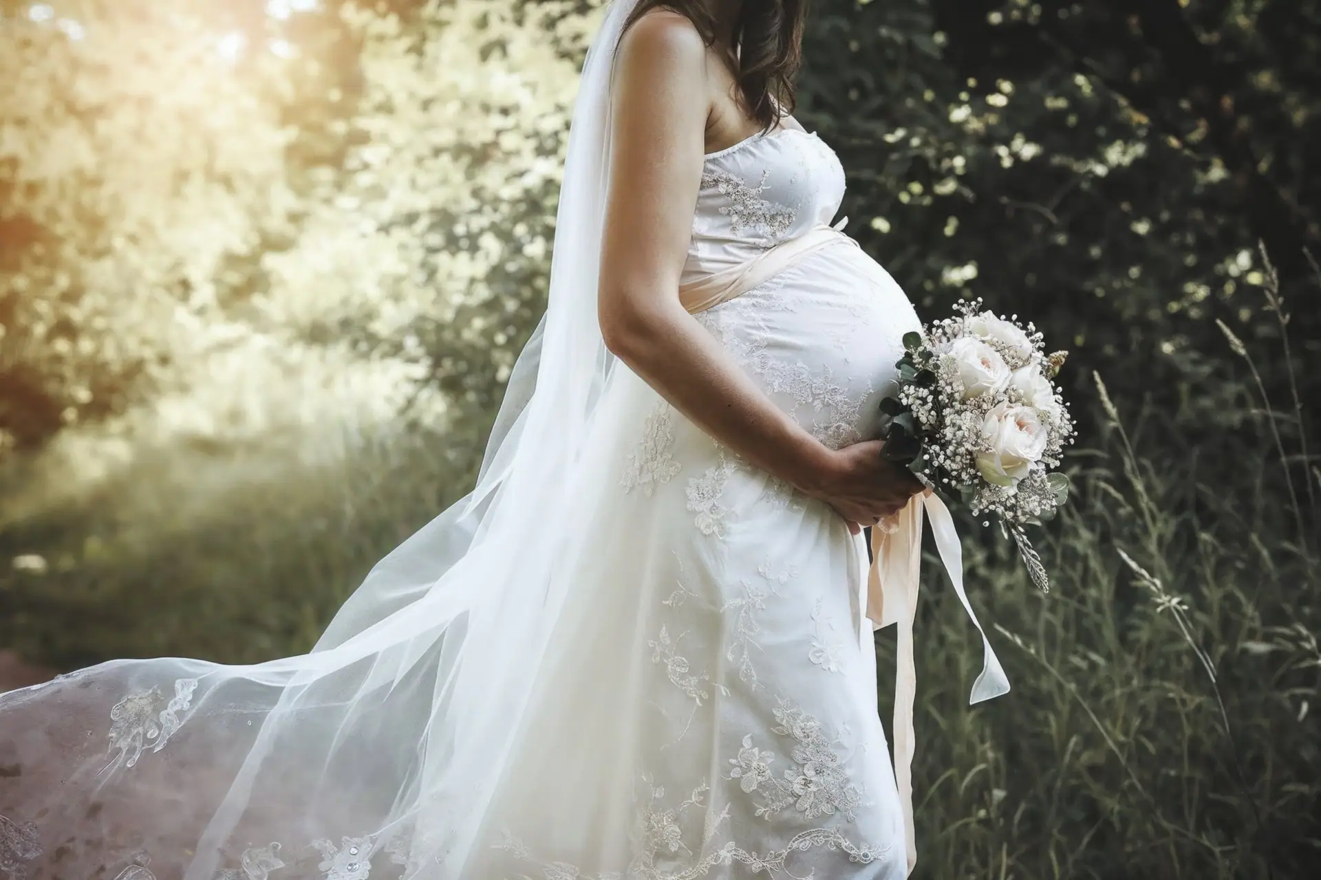 Ob standesamtliche Hochzeit, freie Trauung oder große Feier – unsere Umstandsbrautmode Berlin bietet dir unterschiedliche Schnitte wie Empire, A-Linie oder fließende Silhouetten. So findest du das passende Hochzeitskleid mit Babybauch, abgestimmt auf deinen Stil und deine Schwangerschaft.